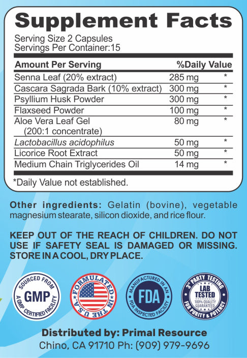 - 🌿 Natural Herbal Formula – Includes senna, cascara sagrada, psyllium husk, flaxseed, and aloe vera for effective cleansing.